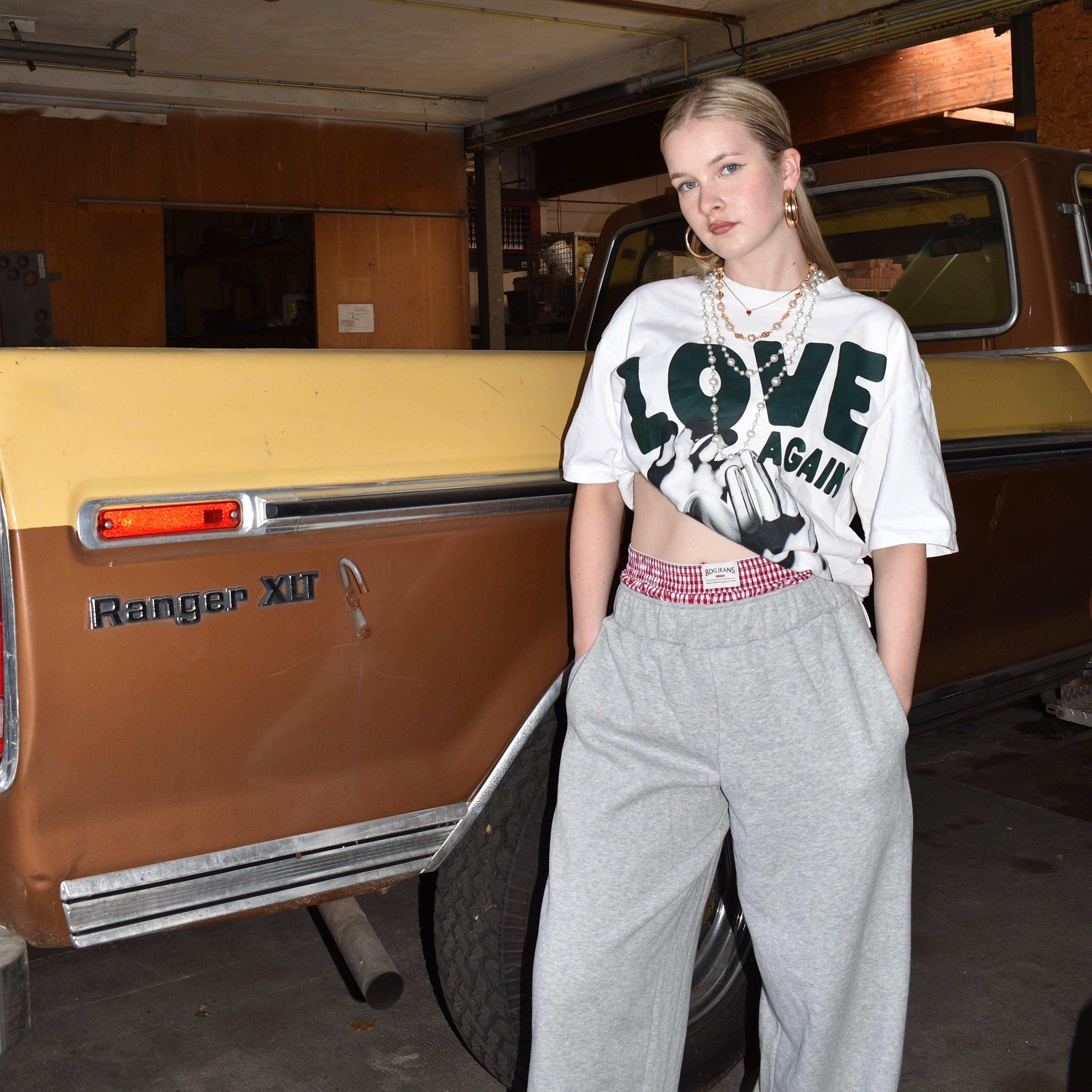 De “Love Again” White Tee is gemaakt van 100% katoen in heavy weight kwaliteit. Het voelt stevig en luxe aan, blijft mooi na veel dragen en wassen en zit altijd comfortabel.